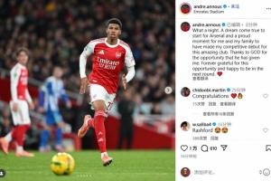 安努斯写道:“多么美妙的夜晚。为阿森纳首发是梦想成真,我和家人都为我为这家了不起的俱乐部完成正式首秀而感到自豪。感谢上帝赐予我的这个机会,永远感激这次机遇,并为成功晋级下一轮感到开心。❤️”