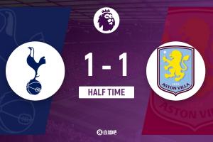 半场-热刺1-1维拉 本坦库尔破门库杜斯进球被吹 罗杰斯世界波扳平