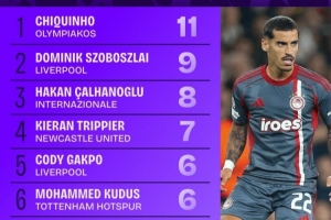 体育资讯10月23日讯 本赛季欧冠联赛阶段已战罢3轮,Squawka统计了到目前为止的精准传中榜单,奥林匹亚科斯中场奇奎尼奥11次位列第一,利物浦中场索博斯洛伊9次第二。